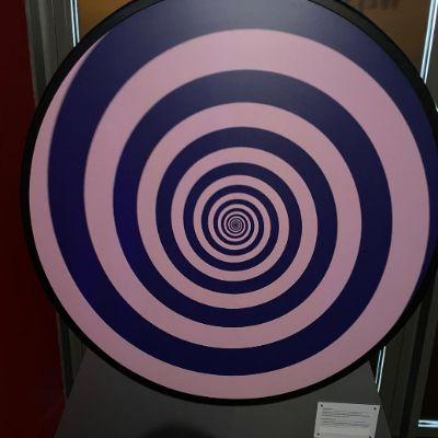 Admirez le cercle d’illusion, un panneau rotatif qui crée une illusion optique lorsqu’il tourne. Cet objet démontre la mécanique de la vision spatiale, car l’image atteint les yeux sous différents angles.